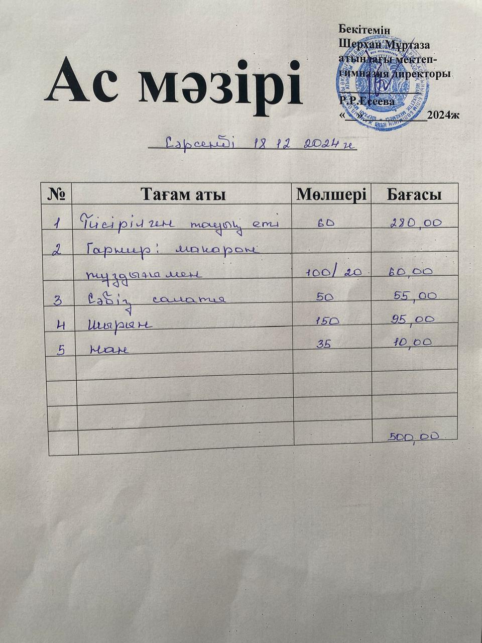11 ноябрь 2024 ТАМАҚТАНДЫРУ