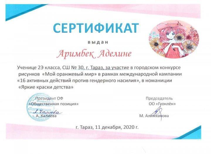 Үздік деп танылған оқушыларымыз Ортаева Назира және Аримбек Аделина қалалық байқаудан жүлдесіз қайтпады. Ортаева Назира жүлделі 1-орынды иеленсе, Аримбек Аделина арнайы сертификатпен марапатталды.