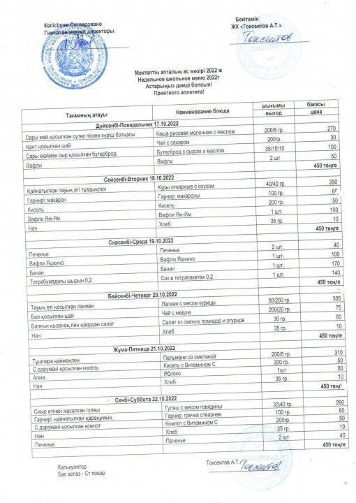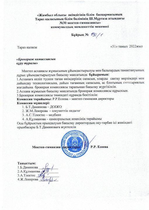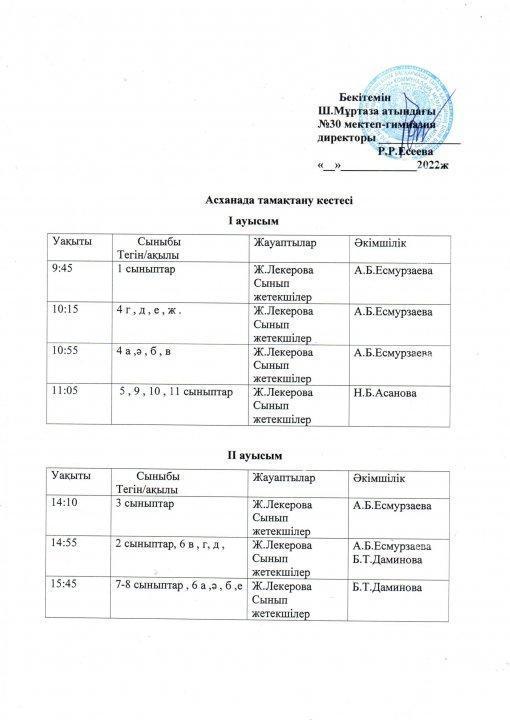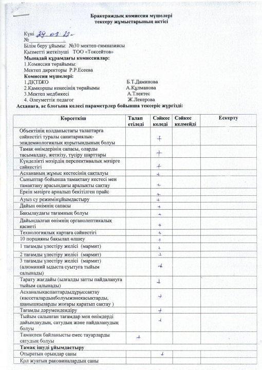 Мектептік тамақтандыру » №30 мектеп-гимназия