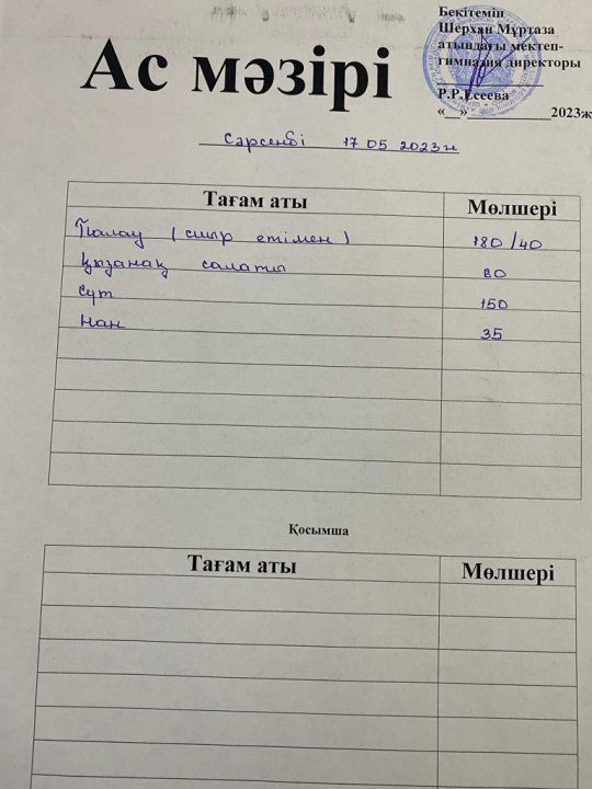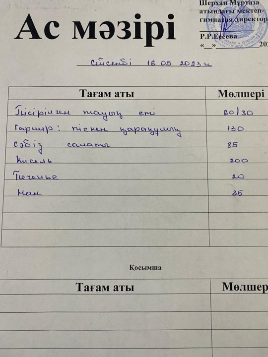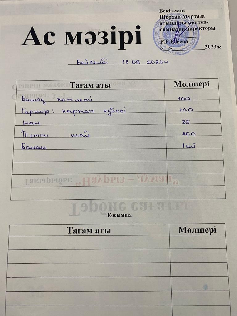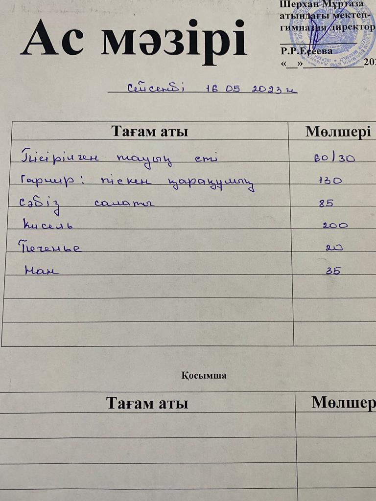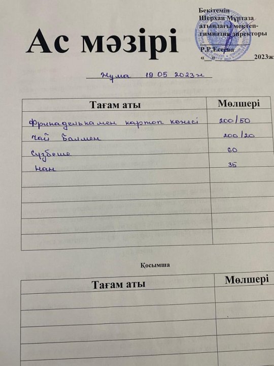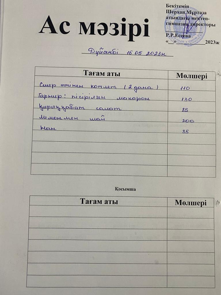 Мектеп меню 15-19 мамыр
