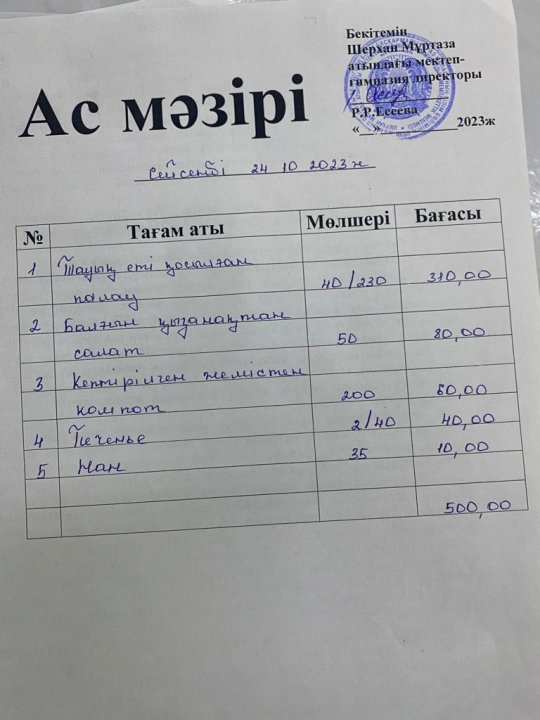 Мектеп меню 23-27 қазан » №30 мектеп-гимназия