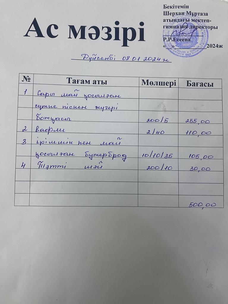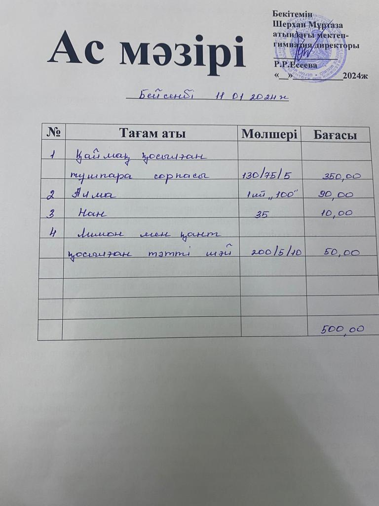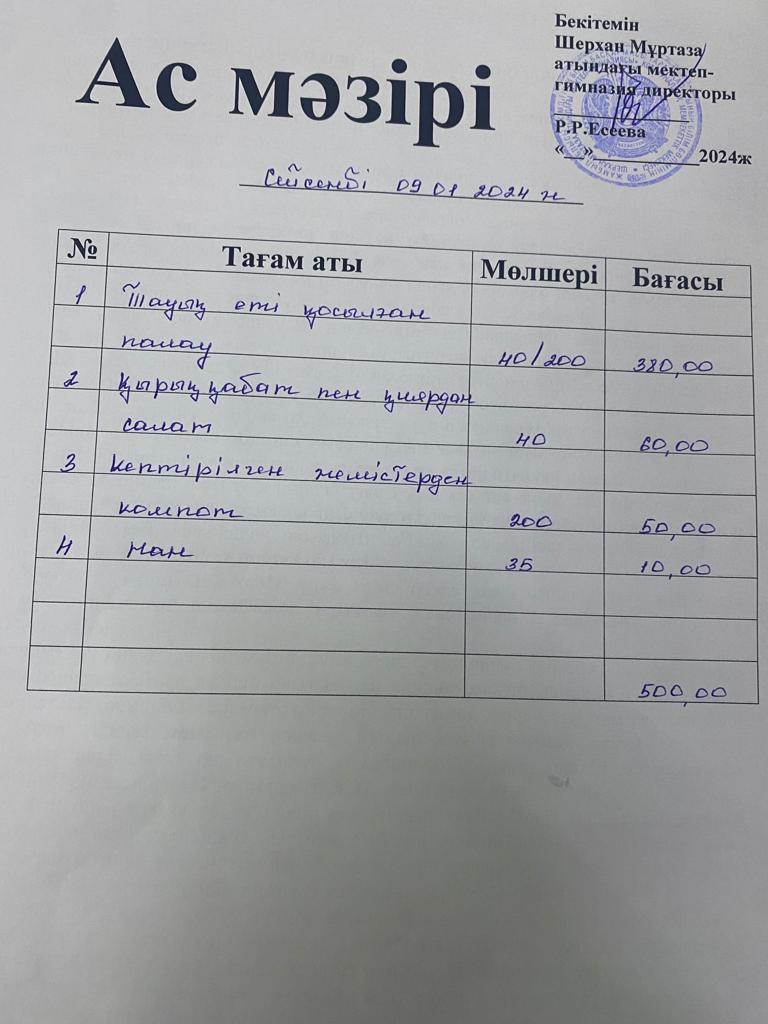 Мектеп меню 8 - 12 қаңтар » №30 мектеп-гимназия