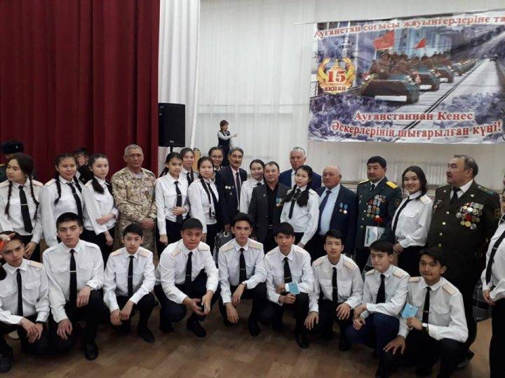 Кездесу №30 мектеп-гимназиясының бишілерінің биімен ашылып,өнерлі оқушылардың әндерімен жалғасты. Кездесу басында қалалық Жамбыл облысы Тараз қаласы Қорғаныс істері жөніндегі басқарма басшысы подполковник Ахметов Асембек Уалиұлы , Тараз қаласының Ауған соғысы ардагерлер одағының төрағасы Ермеков Дүкенбай Сайлаубекұлы Ауған соғысының ардагерлерін құттықтады. Бүгін осы бір салтанатты бас қосуда №30 мектеп-гимназиясының оқушылары, тәуелсіз Қазақстан Қорғаушылары екенін дәлелдейтін алғашқы әскери құжаттарын алды. Алғашқы әскери құжатты Жамбыл облысы және Тараз қаласының Ауған соғысы ардагерлер одағының төрағасы Ермеков Дүкенбай Сайлаубекұлы тапсырды.