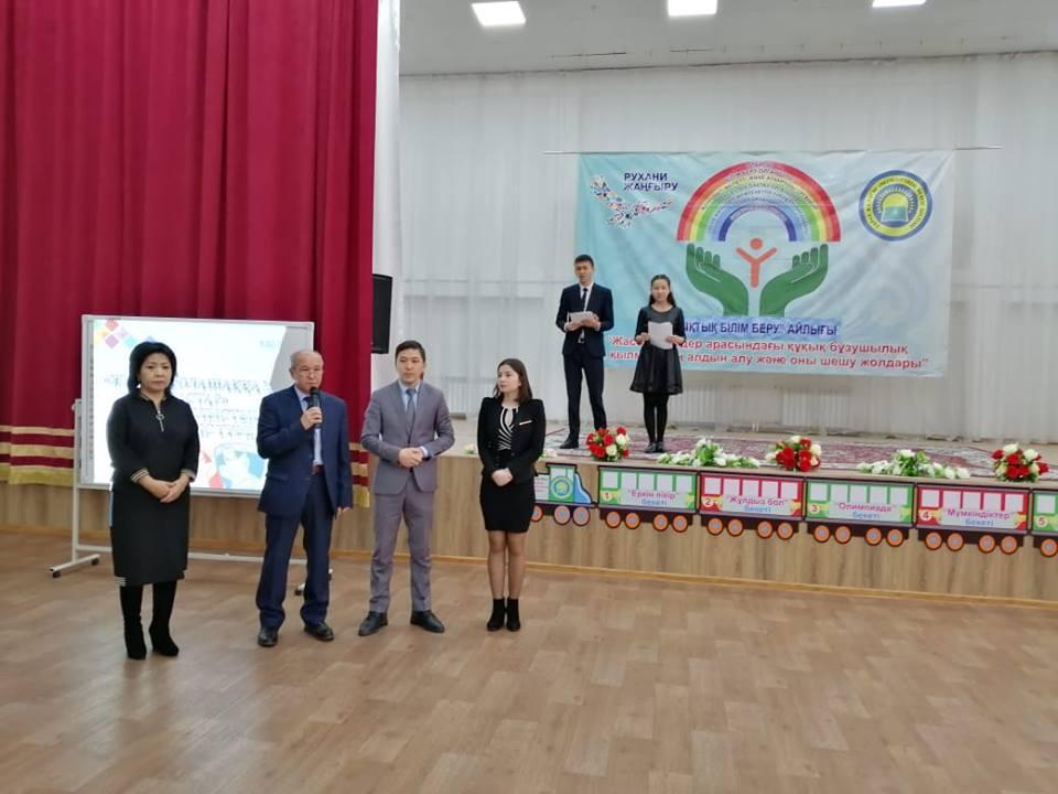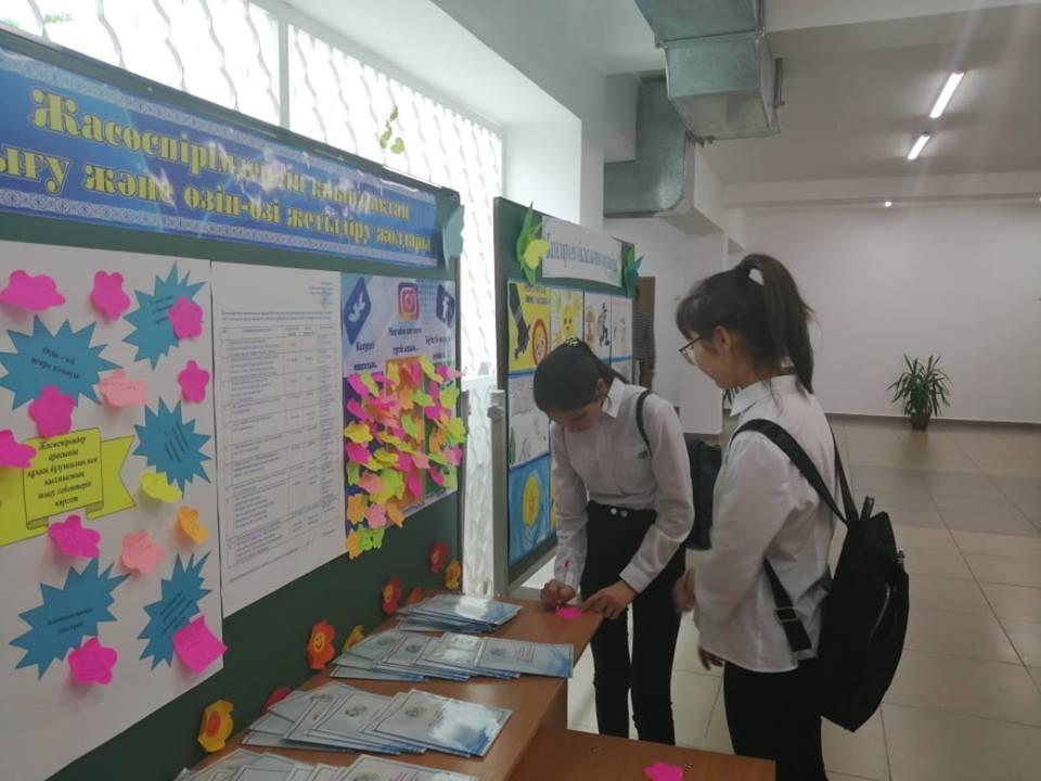 Оқушылар мен ата-аналардың құқықтық мәдениетін арттыру мақсатында "Жасөспірімдердің қиындықтан шығу және өзін-өзі жетілдіру" айлығының аясында 30 мектеп-гимназия қабырғасында өткізілген "Жастар болашаққа жол бастар" атты облыстық пікір-сайыс турнирі.