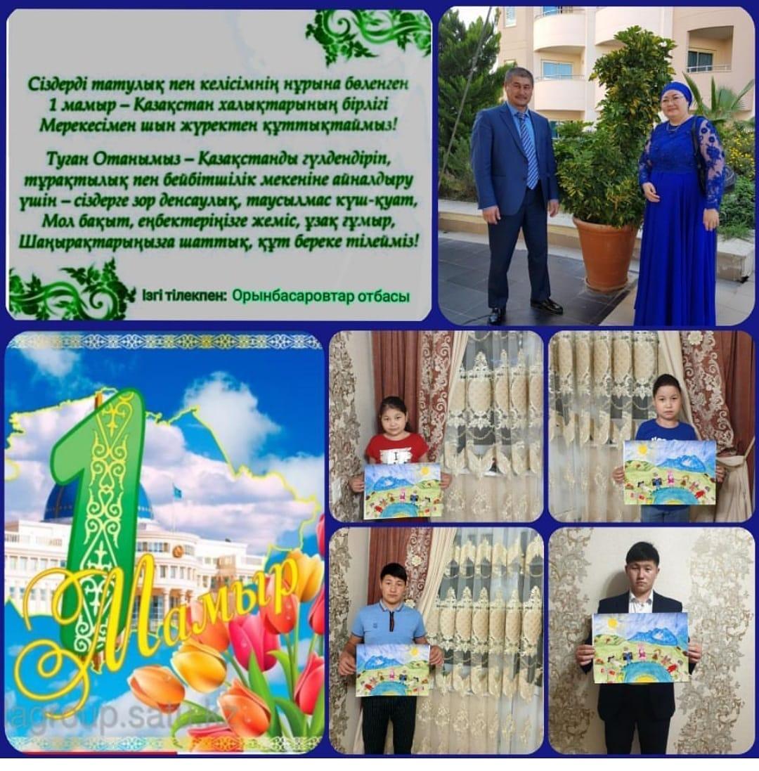 01 май 2020 0 1 2 3 4 5 1-мамыр Қазақстан халықтарының бірлігі күні Тараз қаласы #30 мектеп-гимназиясында 1-мамыр Қазақстан халықтарының бірлігі күніне орай үлгілі Орынбасаровтар отбасы баршаңызды мерекемен құттықтауда