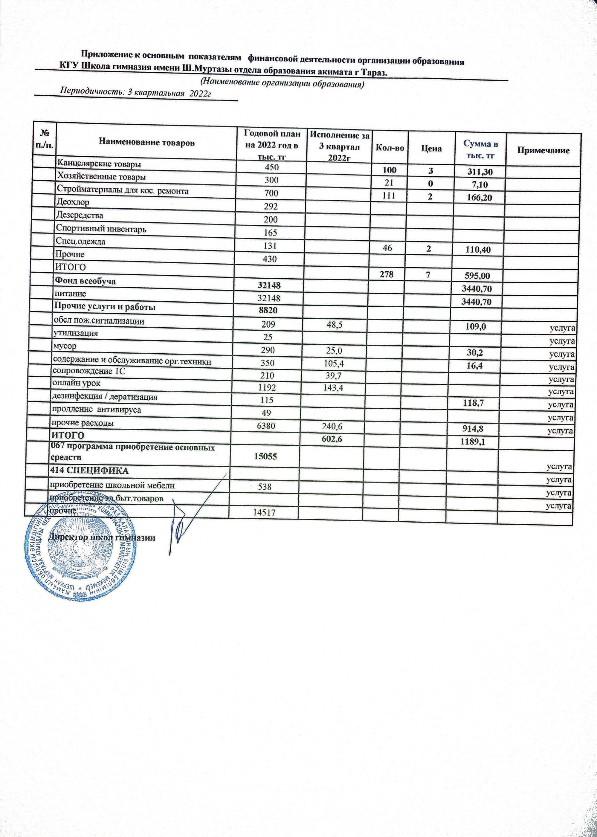 Қаржы қызметінің негізгі көрсеткіштері 2022 жылдың 1-қазаны » №30 мектеп-гимназия