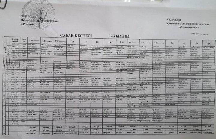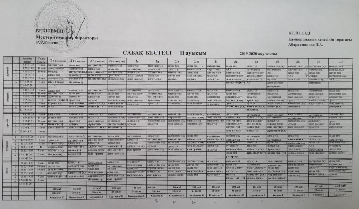 Бастауыш сынып сабақ кестесі 2019-2020 оқу жылы