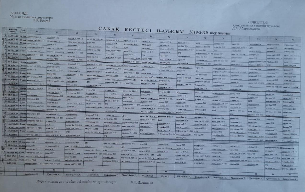 ІІ ауысым сабақ кестесі 2019-2020 оқу жылы » №30 мектеп-гимназия
