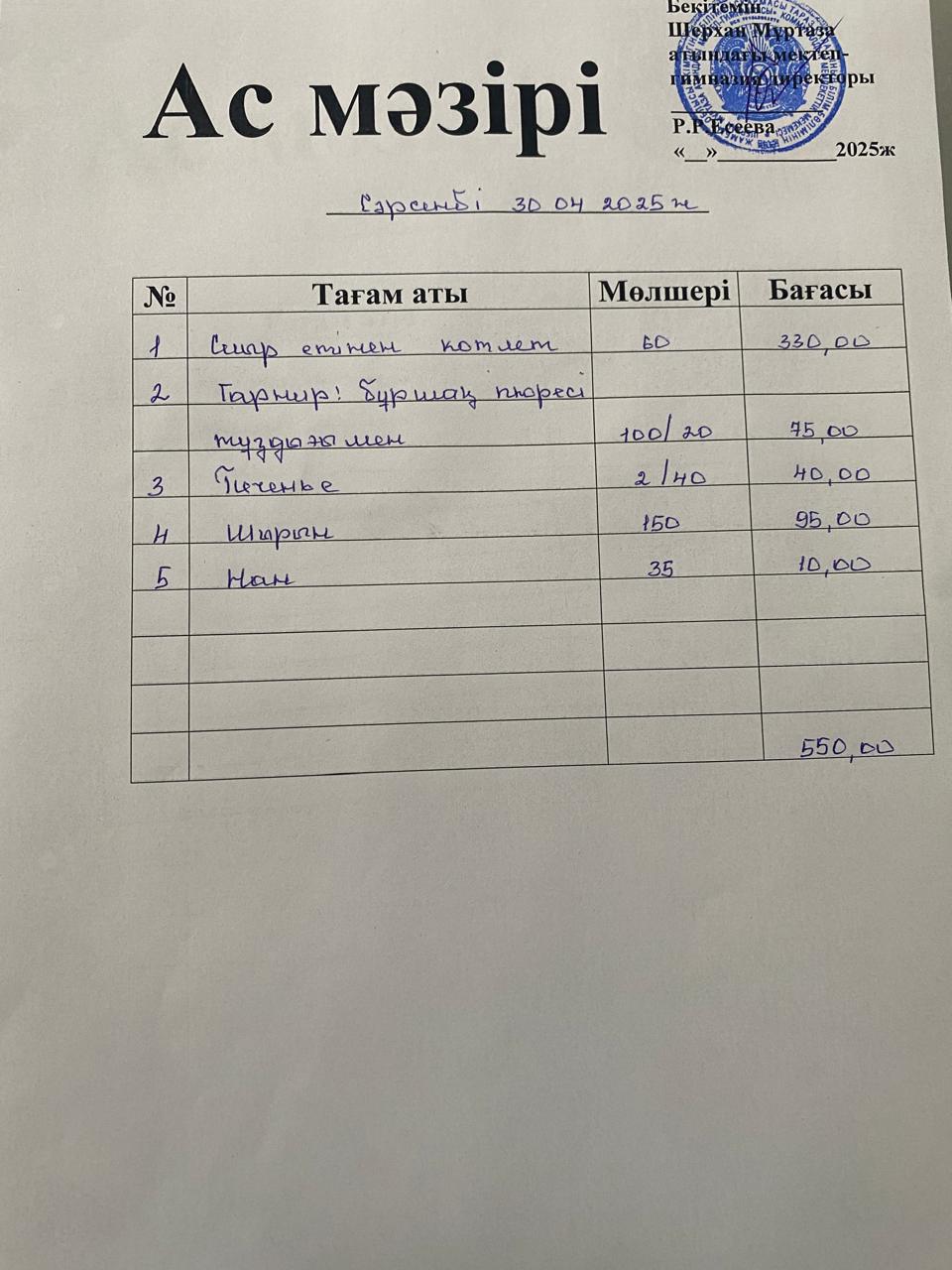 10 декабрь 2024 Ас мәзірі