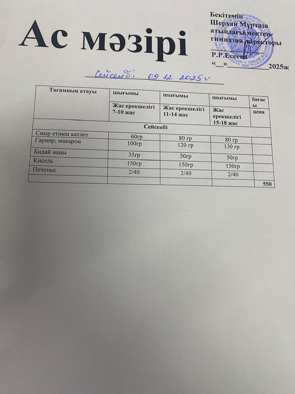 11 ноябрь 2024 ТАМАҚТАНДЫРУ
