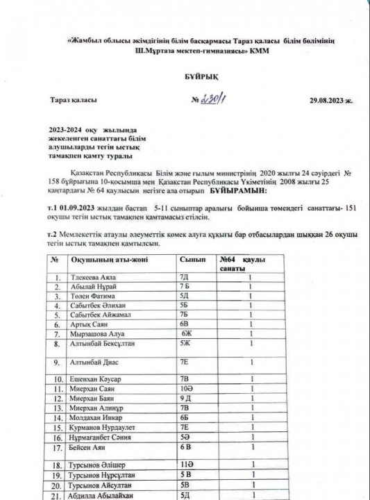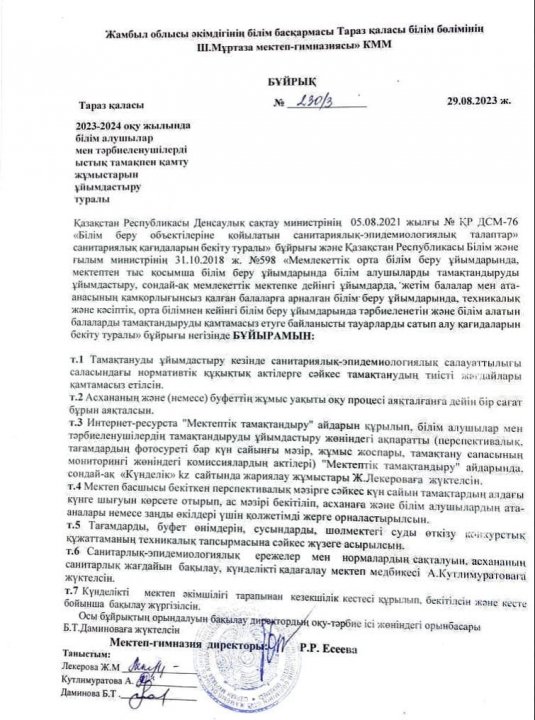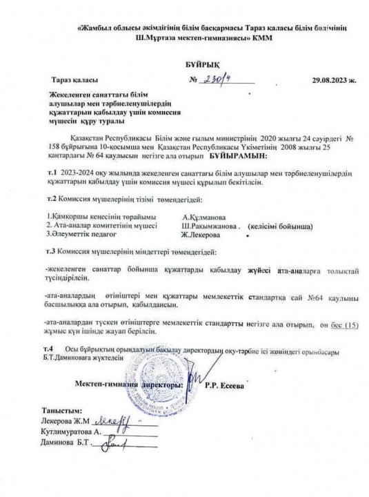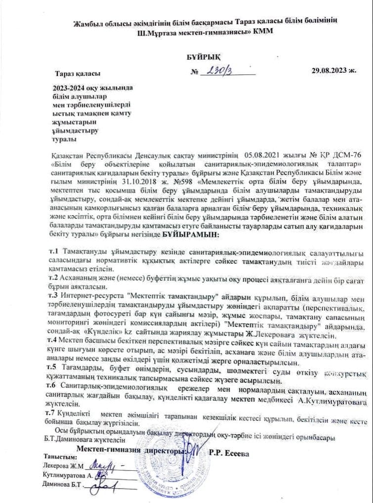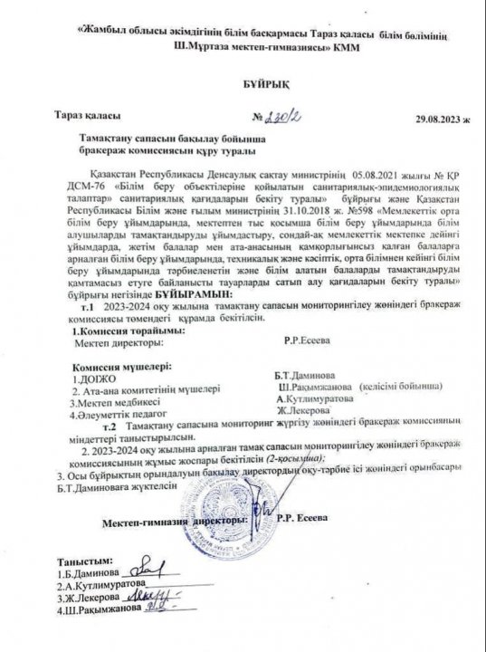 Бракераж комиссия тобының бұйрығы » №30 мектеп-гимназия