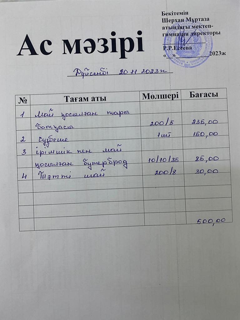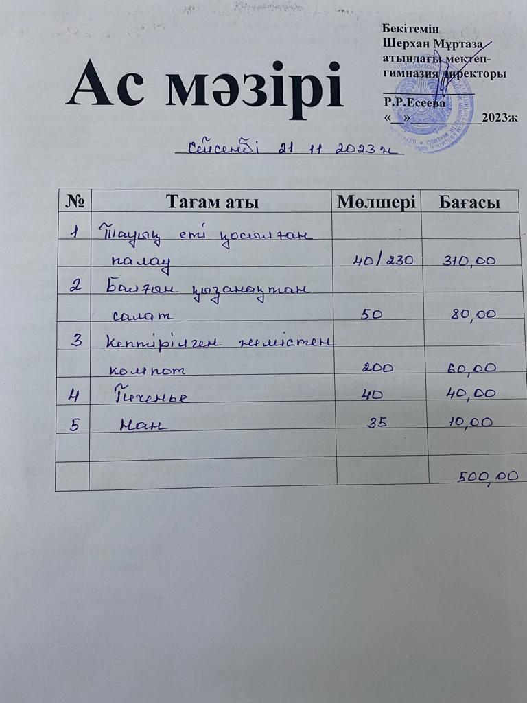 Мектеп меню 20-23 қараша » №30 мектеп-гимназия