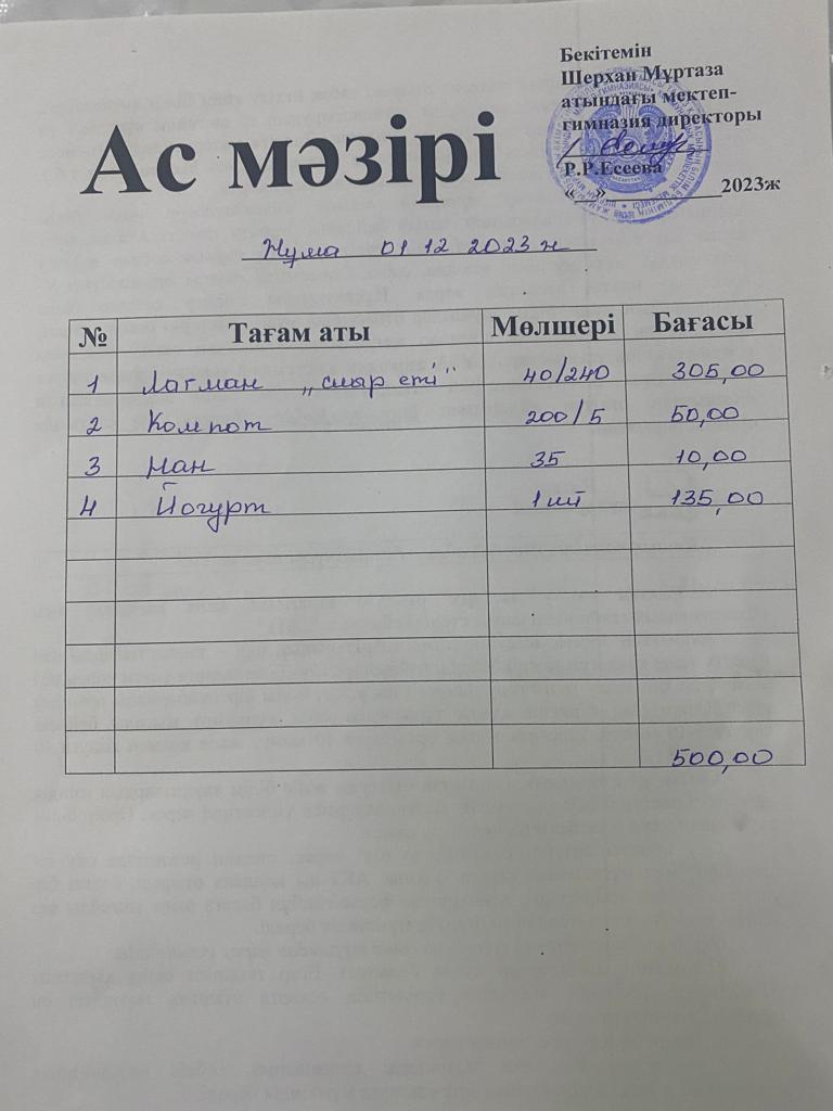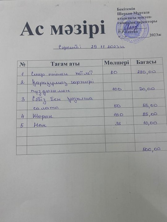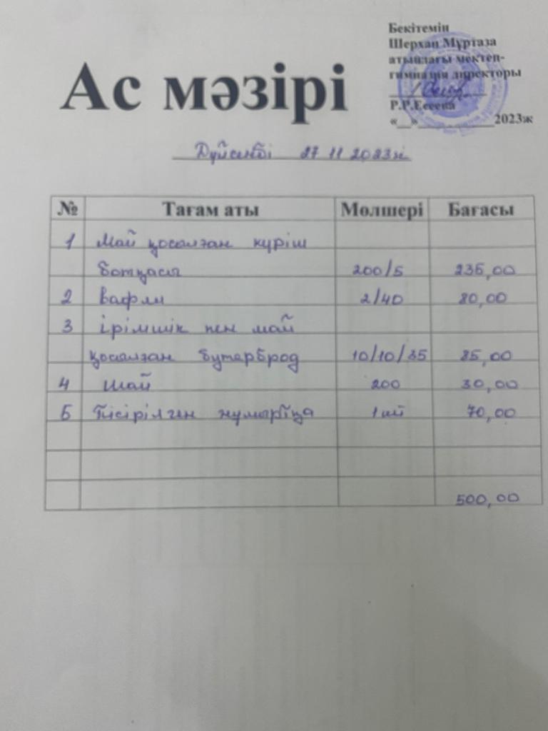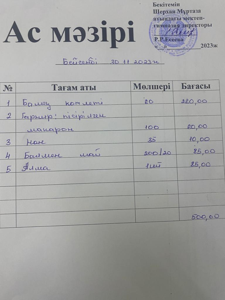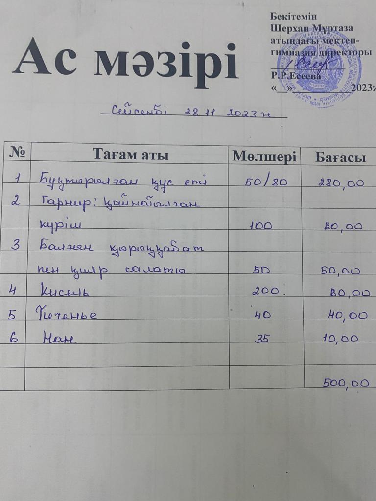 Мектеп меню 27 қараша - 1 желтоқсан