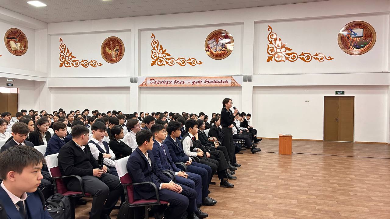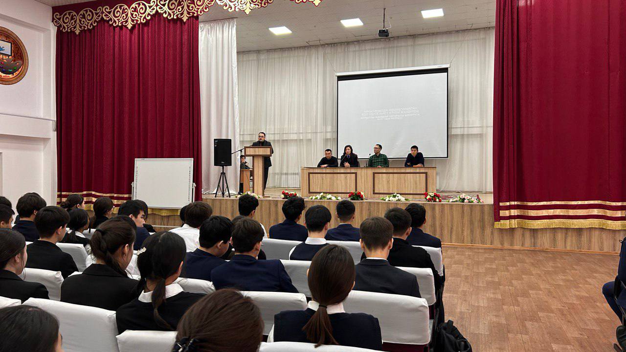 Кездесу барысында мектеп-гимназия білім алушыларына «Темекі шегудің зияны» және «Нашақорлыққа жол жоқ!» атты ақпараттық бейнебаян көрсетілді.