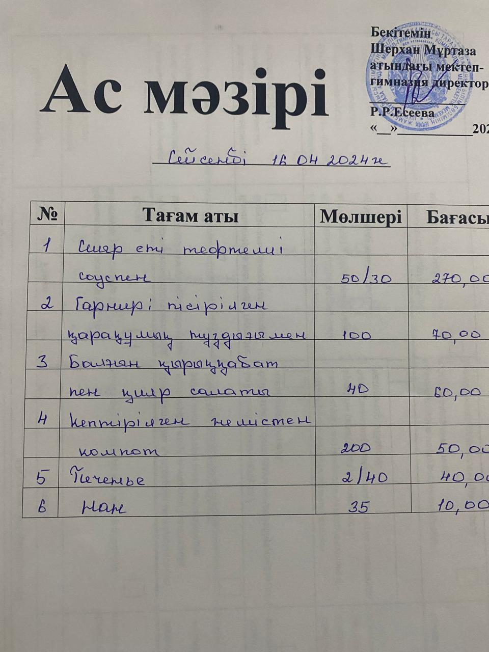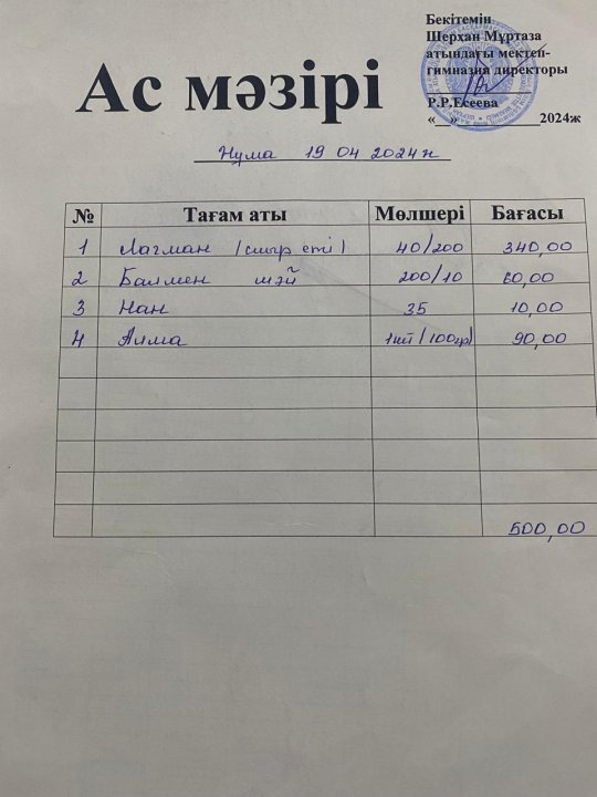 11 апрель 2022 11 сәуір ас мәзірі