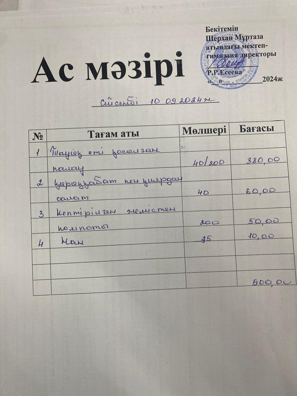 10 декабрь 2024 Ас мәзірі
