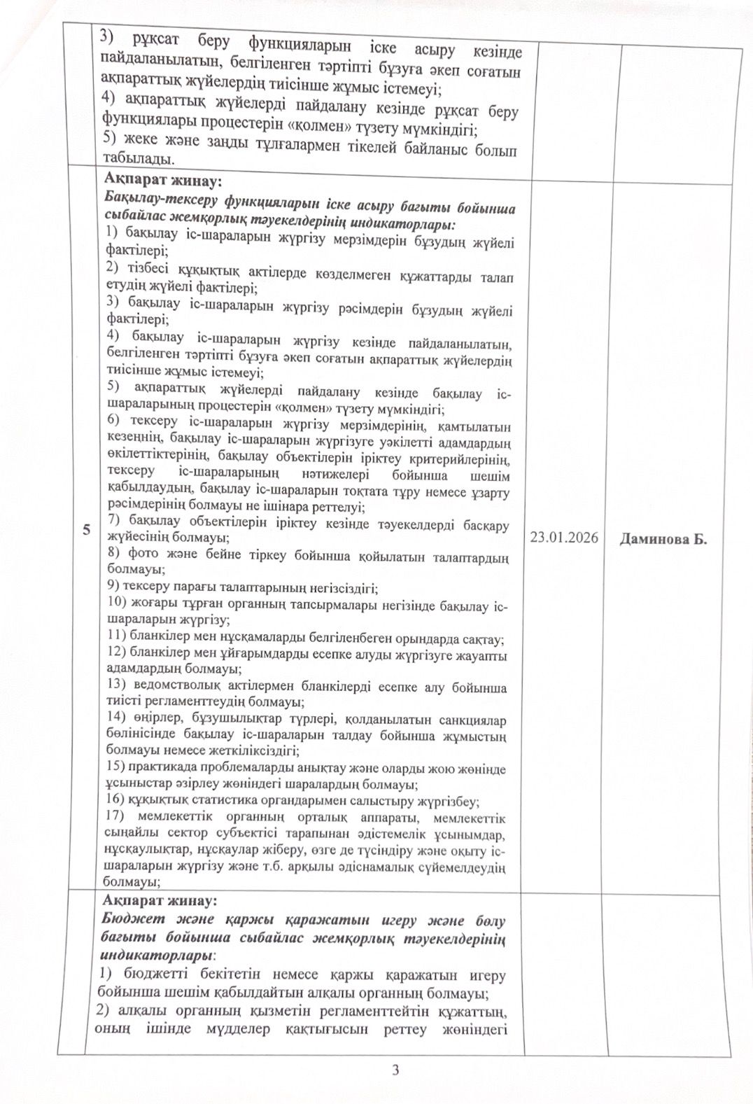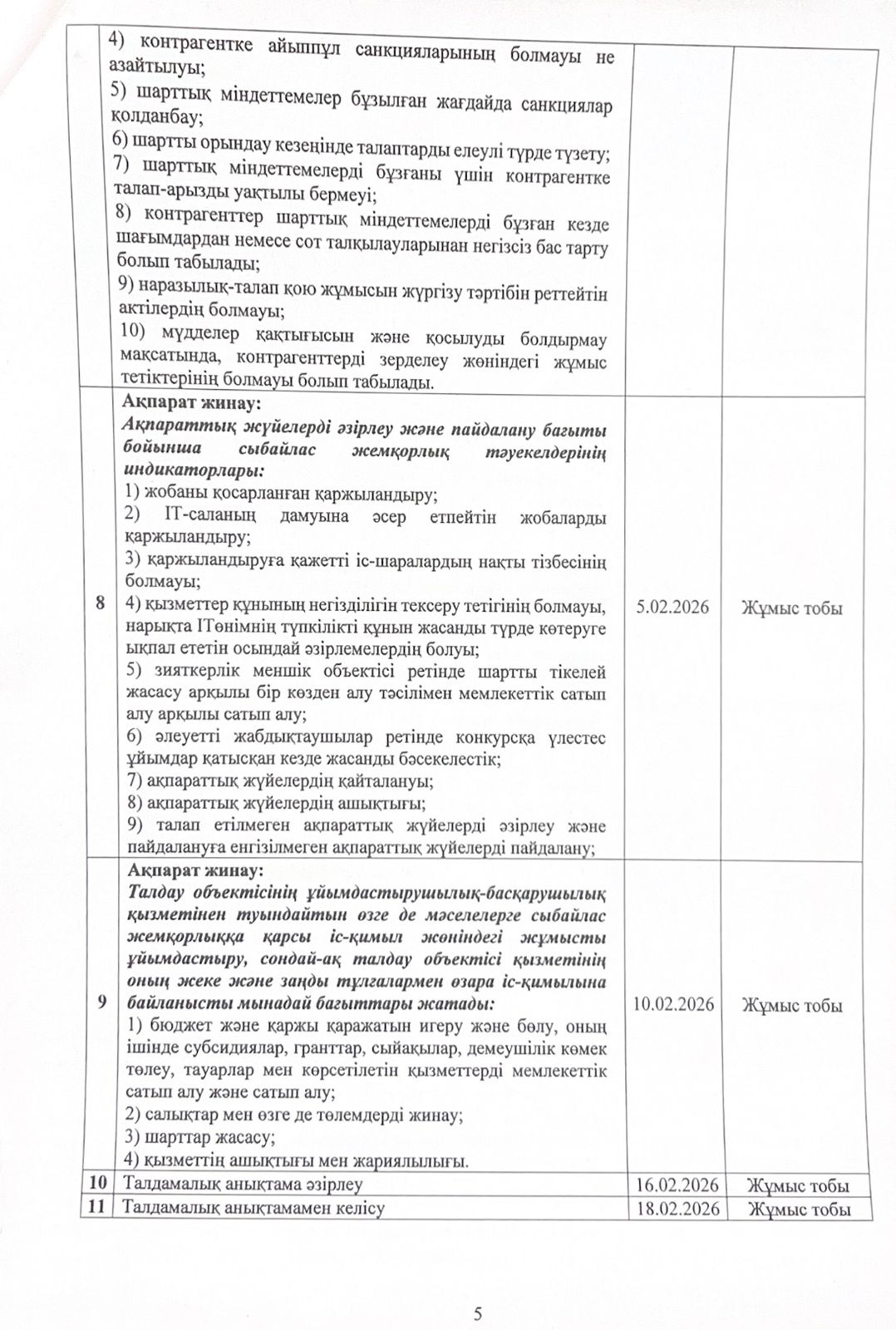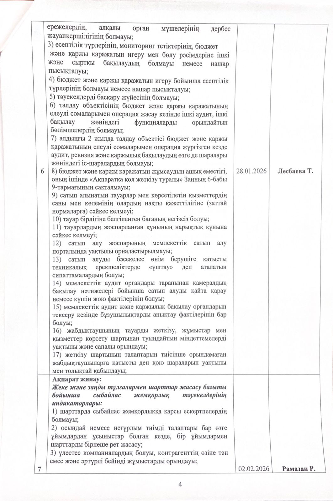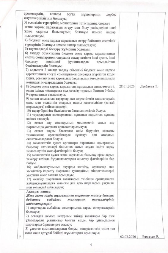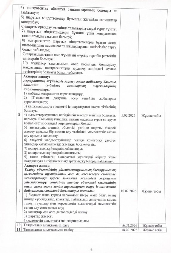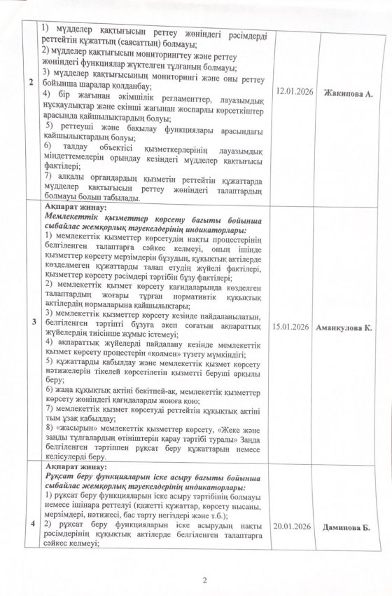 05 январь 2026 0 1 2 3 4 5 Сыбайлас жемқорлық тәуекелдеріне ішкі талдау жүргізу жөніндегі жұмыс жоспары