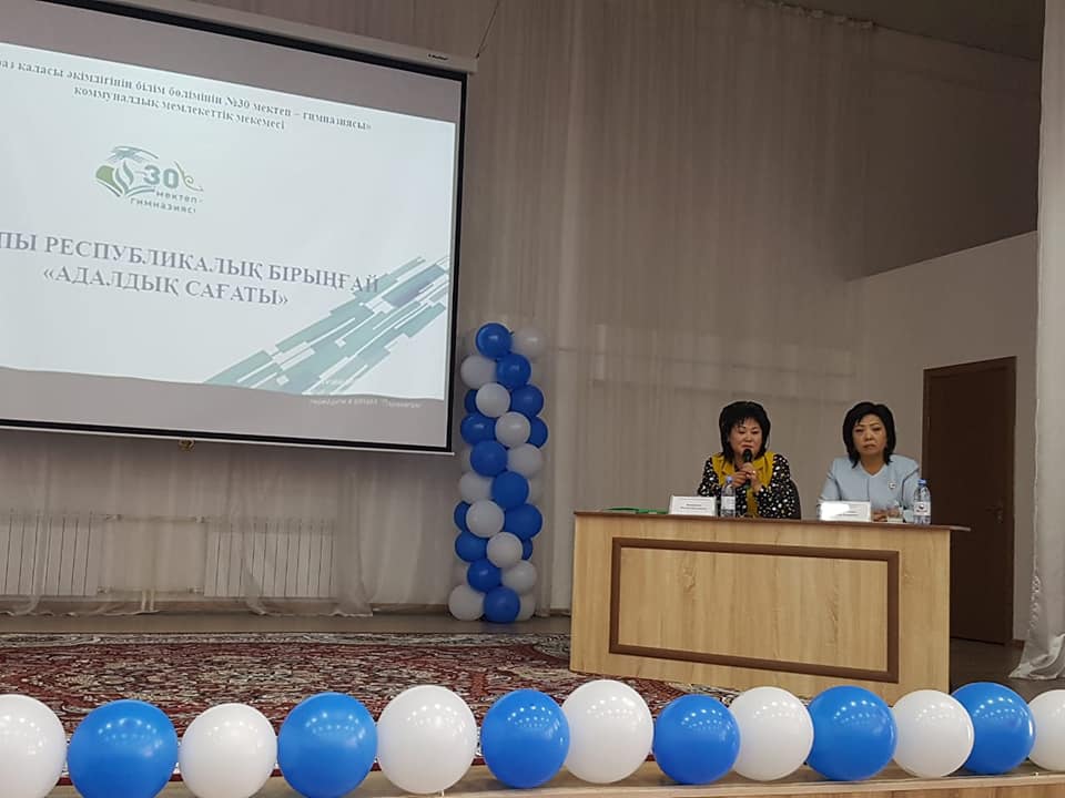 2019 жылдың 2 қыркүйегінде №30 мектеп-гимназиясында Сыбайлас жемқорлыққа қарсы іс - қимыл агенттігінің бастамасымен, Қазақстан Республикасының Білім және ғылым министрлігінің қолдауымен республика көлемінде ұйымдастырылған «Адалдық сағаты» тәрбие сағаты өтті.Адалдық сағатына» Тараз қаласы әкімдігінің білім бөлімінің басшысы Жинақбаева Мүбарак Қасымқызы, Қазақстан Республикасының сыбайлас жемқорлыққа қарсы іс-қимыл агенттігінің Жамбыл облысы бойынша департамент өкілі Алимходжаев Амир Замирович қатысты. Мүбарак Қасымқызы оқушыларды жаңа оқу жылымен құттықтап, бүгінгі күні сыбайлас жемқорлық-үлкен індет екенін,бүгінгі жастар адал,парасатты,әділ,сенімді бойларына ұялату керек екендігін баса айтып өзінің өмірлік іс-тәжірибесімен бөлісіп, алдағы уақытта да білім бөлімі тарапынан сыбайлас жемқорлыққа қарсы іс – қимыл аясында тиісті жұмыстар өз жалғасын табатындығын айтып өтті.