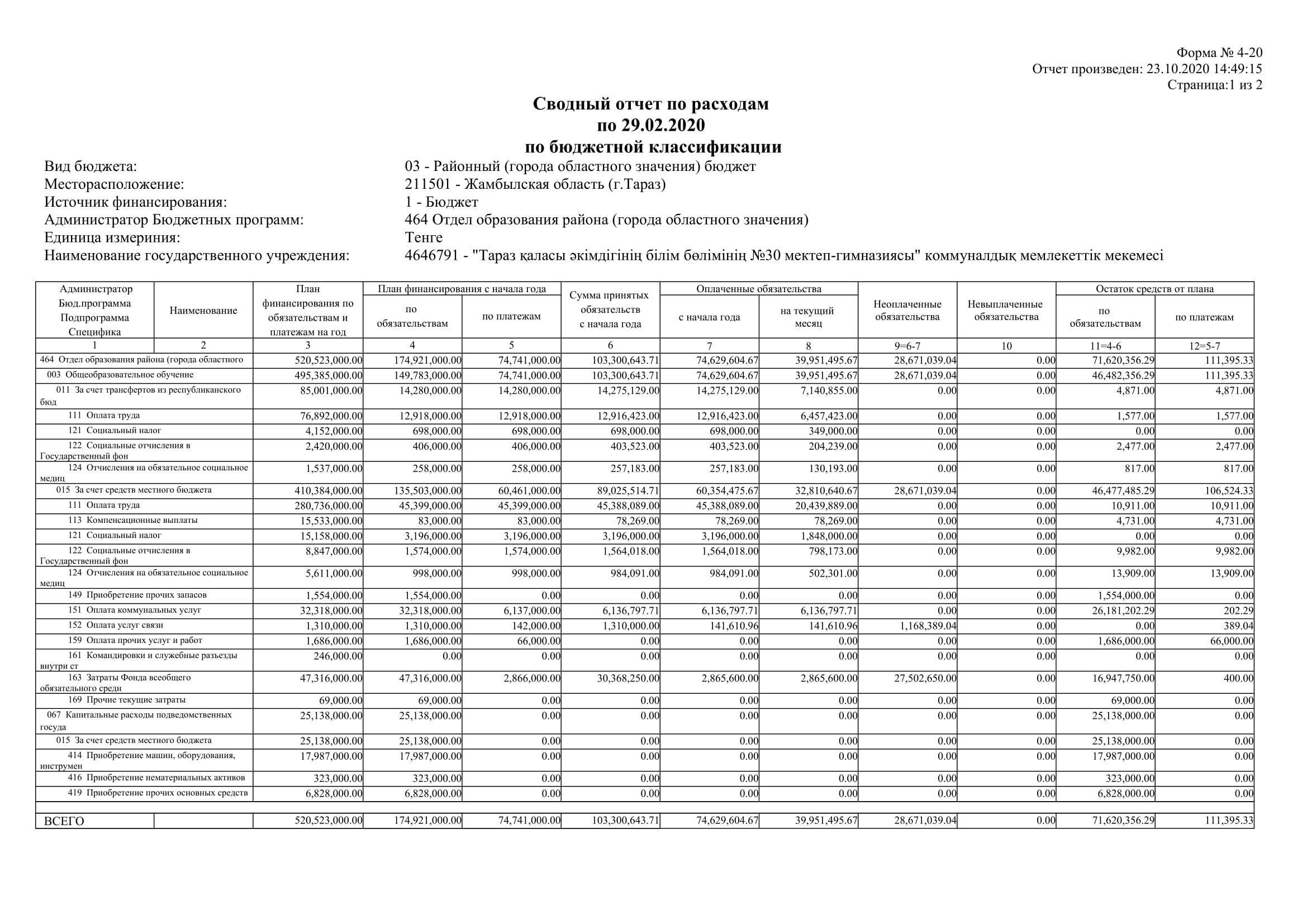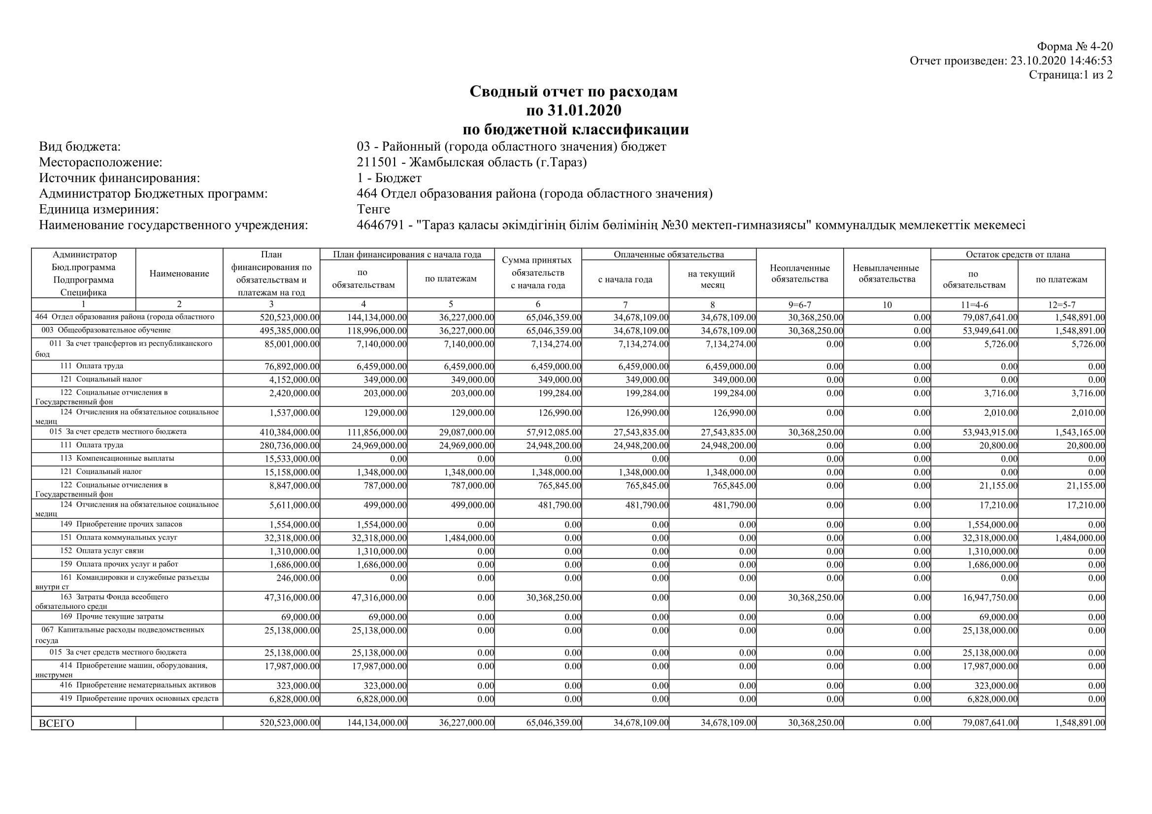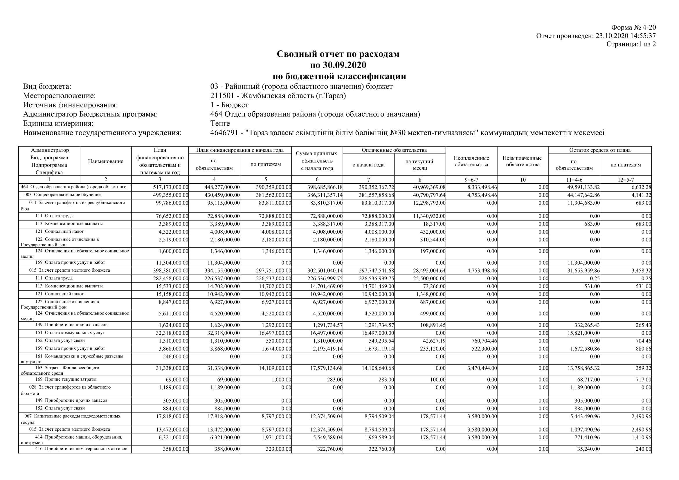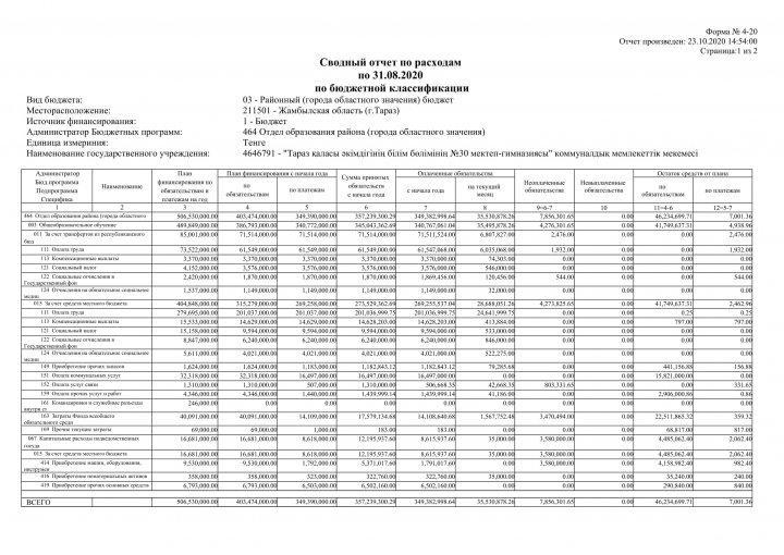 4-20 қаңтар айынан қазан айына дейін » №30 мектеп-гимназия