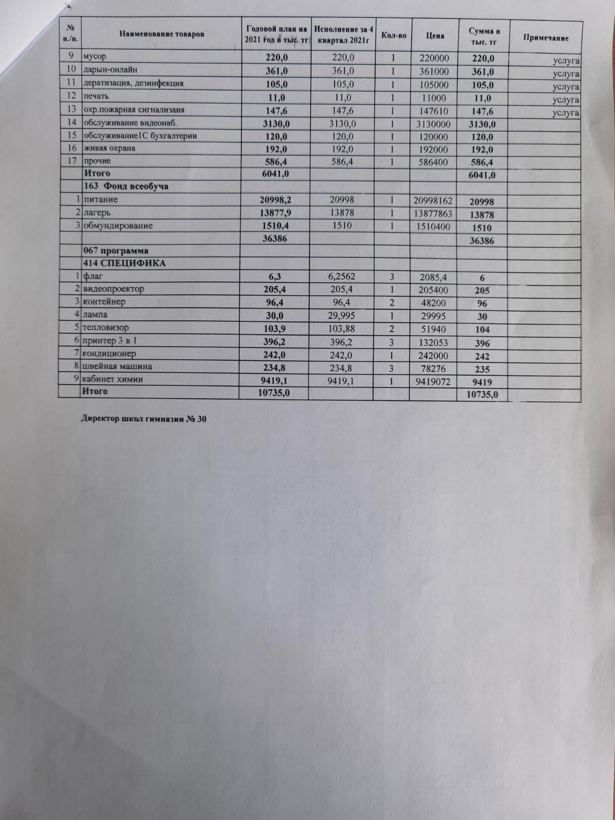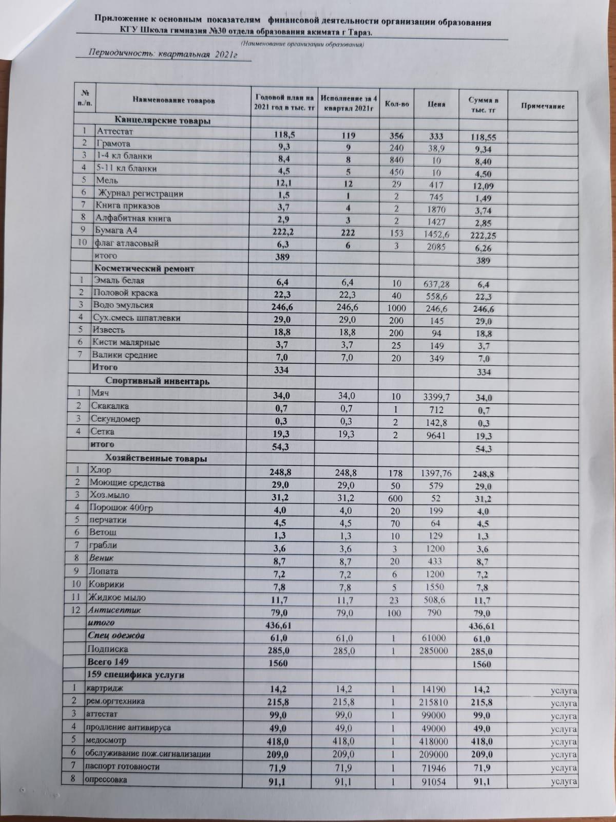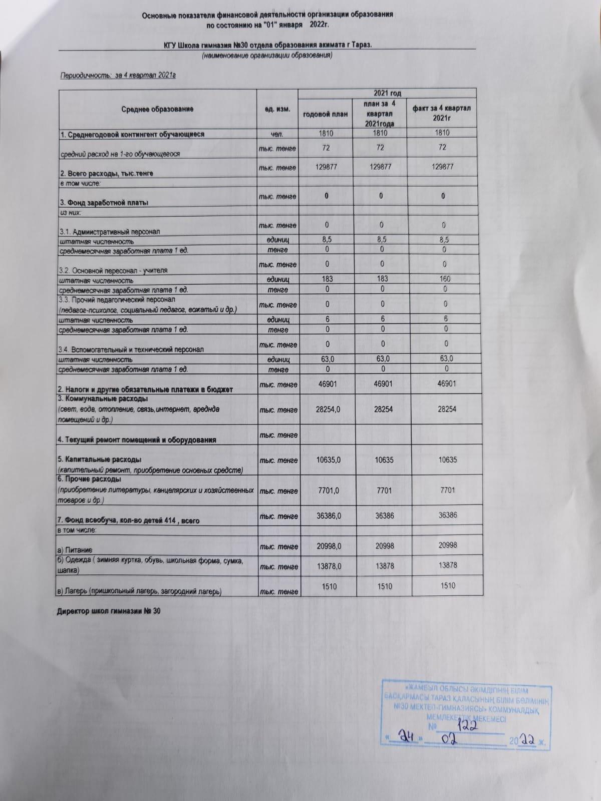 Ашық бюджет қаңтар айы » №30 мектеп-гимназия