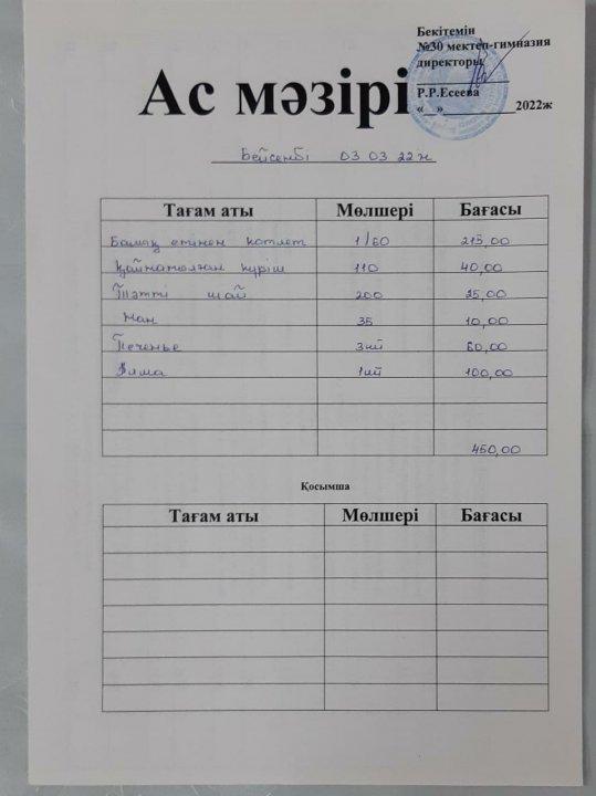 28 ақпан - 5 наурыз аралығындағы ас мәзірі