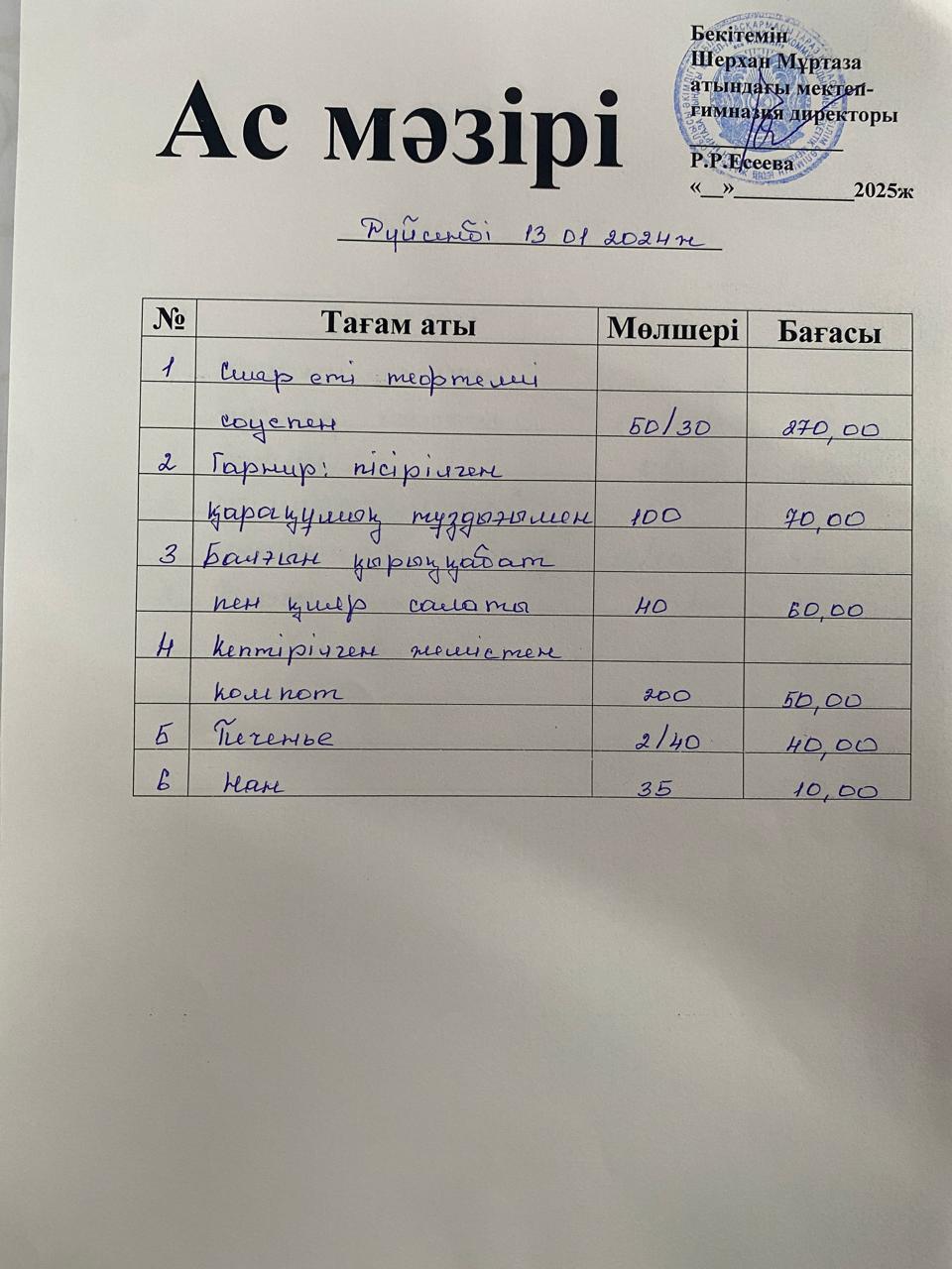 13 сентябрь 2024 Ас мәзірі