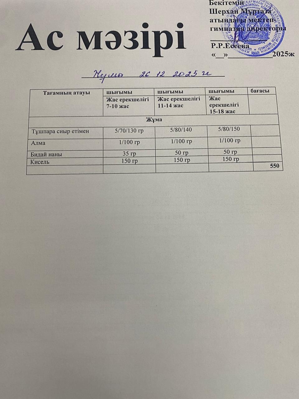11 декабрь 2024 Ас мәзірі
